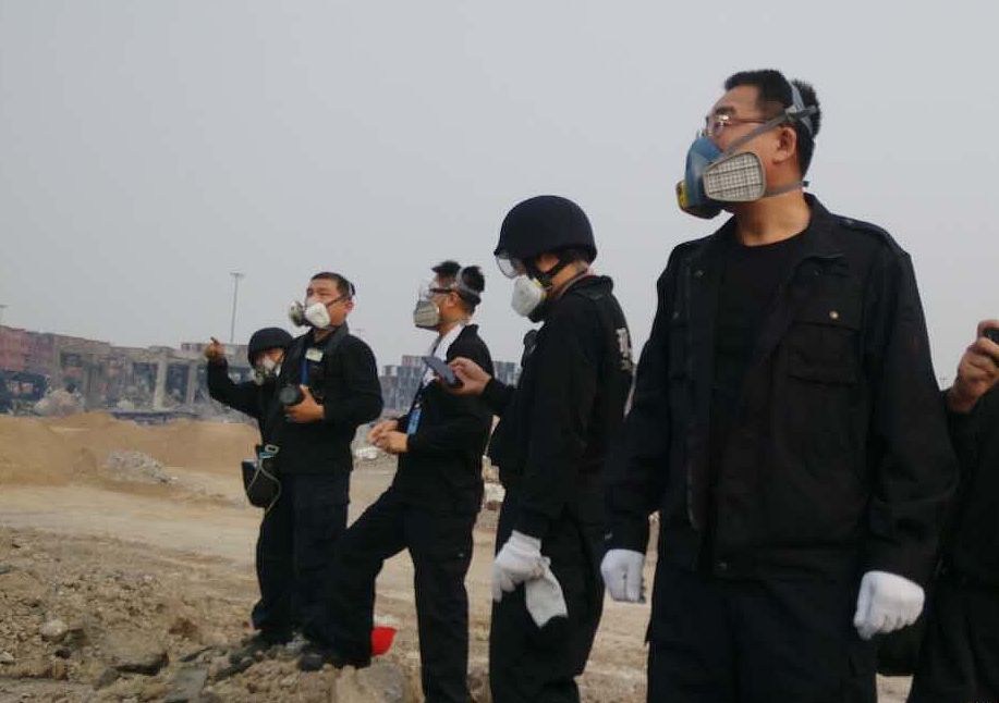 孙玉友和同事们在勘查有害气体爆炸现场。(公安部提供)