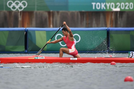 2021年8月7日,在东京奥运会皮划艇静水男子1000米单人划艇决赛中,中国选手刘浩获得银牌。新华社记者 张笑宇 摄