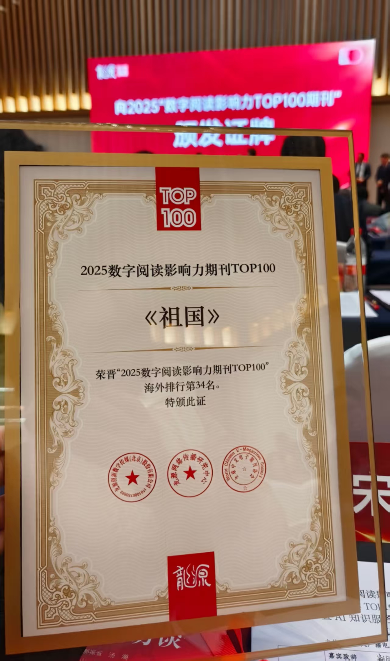 《祖国》杂志荣膺“2025数字阅读影响力TOP100期刊”海外榜第34名!排名大幅跃升展现文化传播力