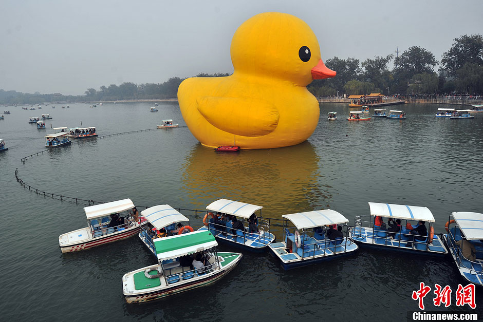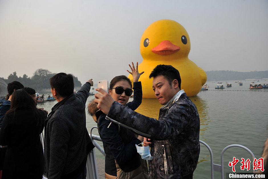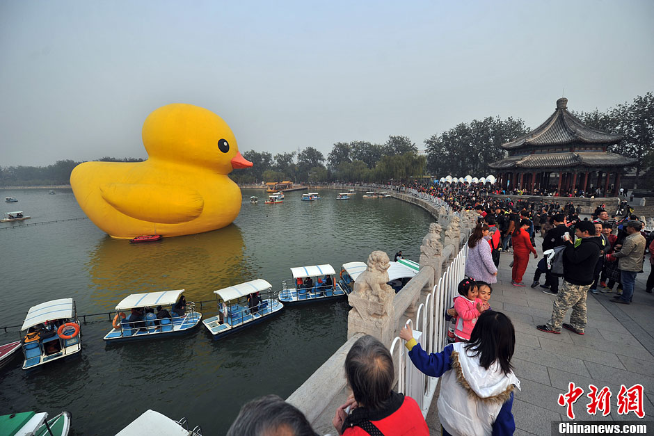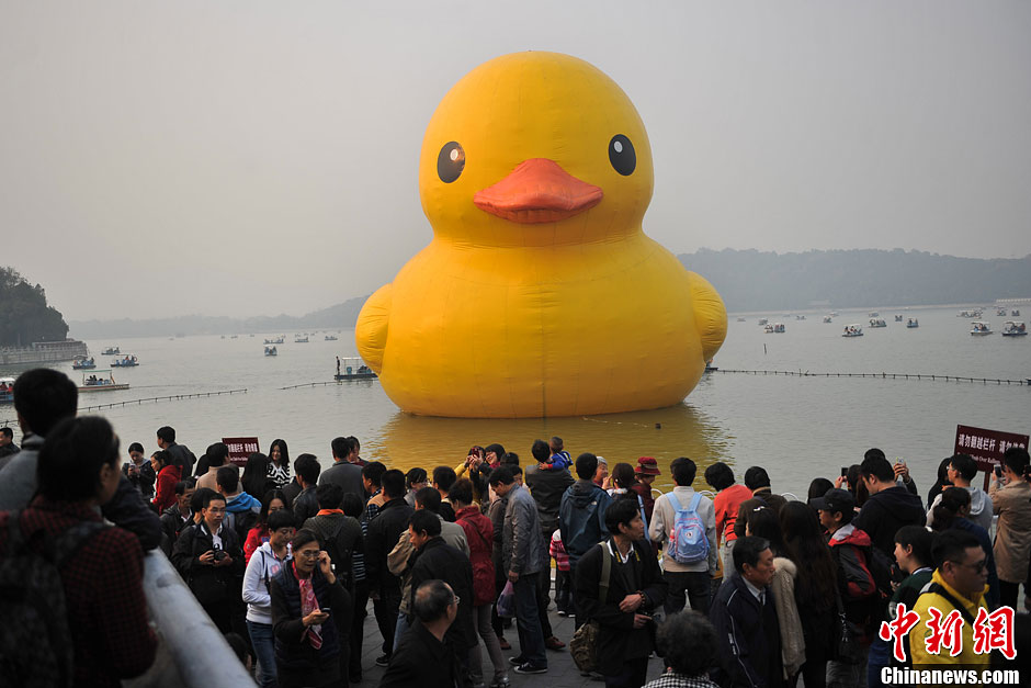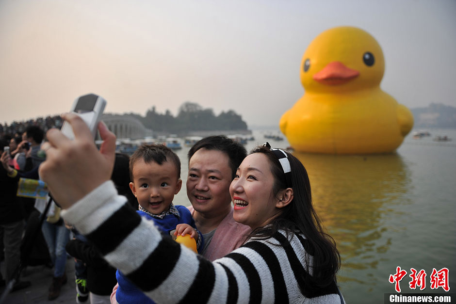 “大黄鸭”谢幕 游客齐聚颐和园说再见