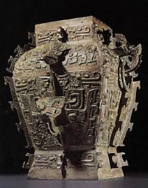 皿天全方罍:器身通高63.6厘米,表面呈金褐色,器形高大、造型雄浑,通体集立雕、浮雕、线雕于一身。器口有“皿天全作父己尊彝”八字铭文,佳士得考证其为商代或西周早期之物。