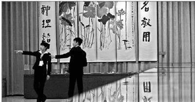 此外,《渡海白云贯古今——黄君璧书画展》也将于今日至5月23日在国博展出,已故的黄君璧先生是一代国画大师和美术教育家,在台湾与张大千、溥心畲一起被称为“渡海三大家”。 展览结束后,黄君璧之女黄湘詅将向国博捐赠20余件黄君璧画作及张大千等友人篆刻的印章。摄影/本报记者 魏彤