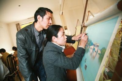 朱军成指导学员绣扬州瘦西湖。